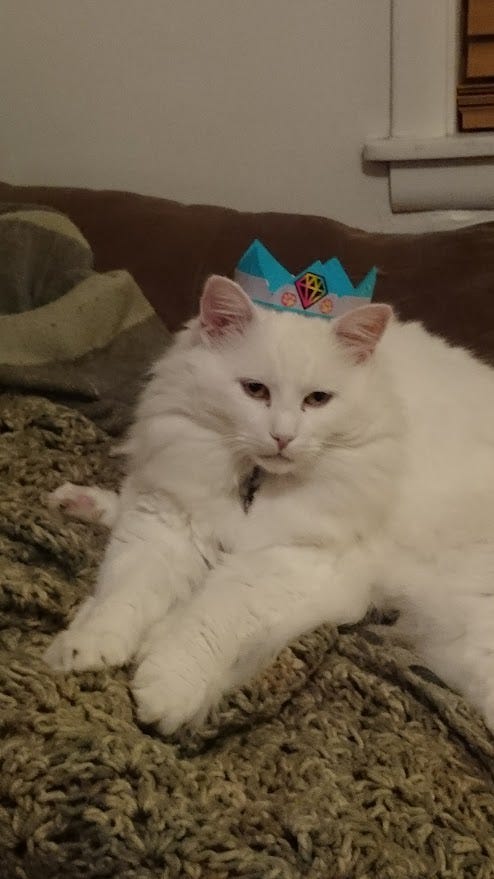 And here he is on his “birthday” being Princess Perfect Paws.