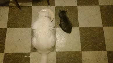 Here they are eating together right after I got Mina.