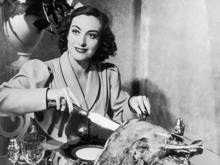 That creamed spinach sounds dangerously good. I love that this isn’t cooking, it’s philosophy with butter. And “Happy Thanksgiving to everyone but Christina” has strong Mommie Dearest energy, no wire hangers, no bland pie. 🥧🦃
